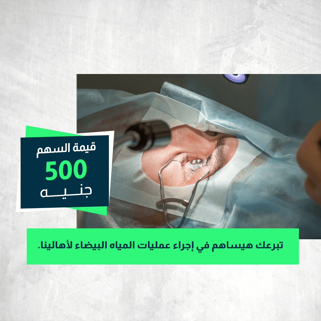 تبرعك هيساهم في إجراء عمليات المياه البيضاء لأهالينا.