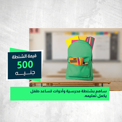 ساهم بشنطة مدرسية وأدوات تساعد طفل يكمل تعليمه.